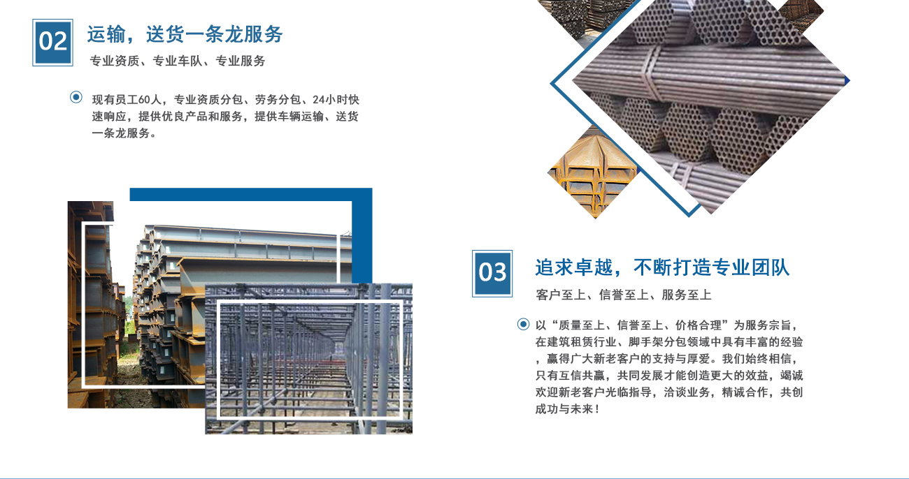 安徽海洋建筑工程機械租賃有限公司、淮南佳輝建筑工程有限公司是由淮南興勝鋼管租賃公司起家的,從事專業(yè)腳手架資質(zhì)分包、鋼管、扣件、槽鋼、頂托、接管器、裝飾腳手架搭設(shè)、吊籃、搭吊等機械設(shè)備的租賃業(yè)務(wù)。公司成立于1999年,憑借著專業(yè)水準和成熟技術(shù),在業(yè)內(nèi)迅速崛起并不斷發(fā)展創(chuàng)新。